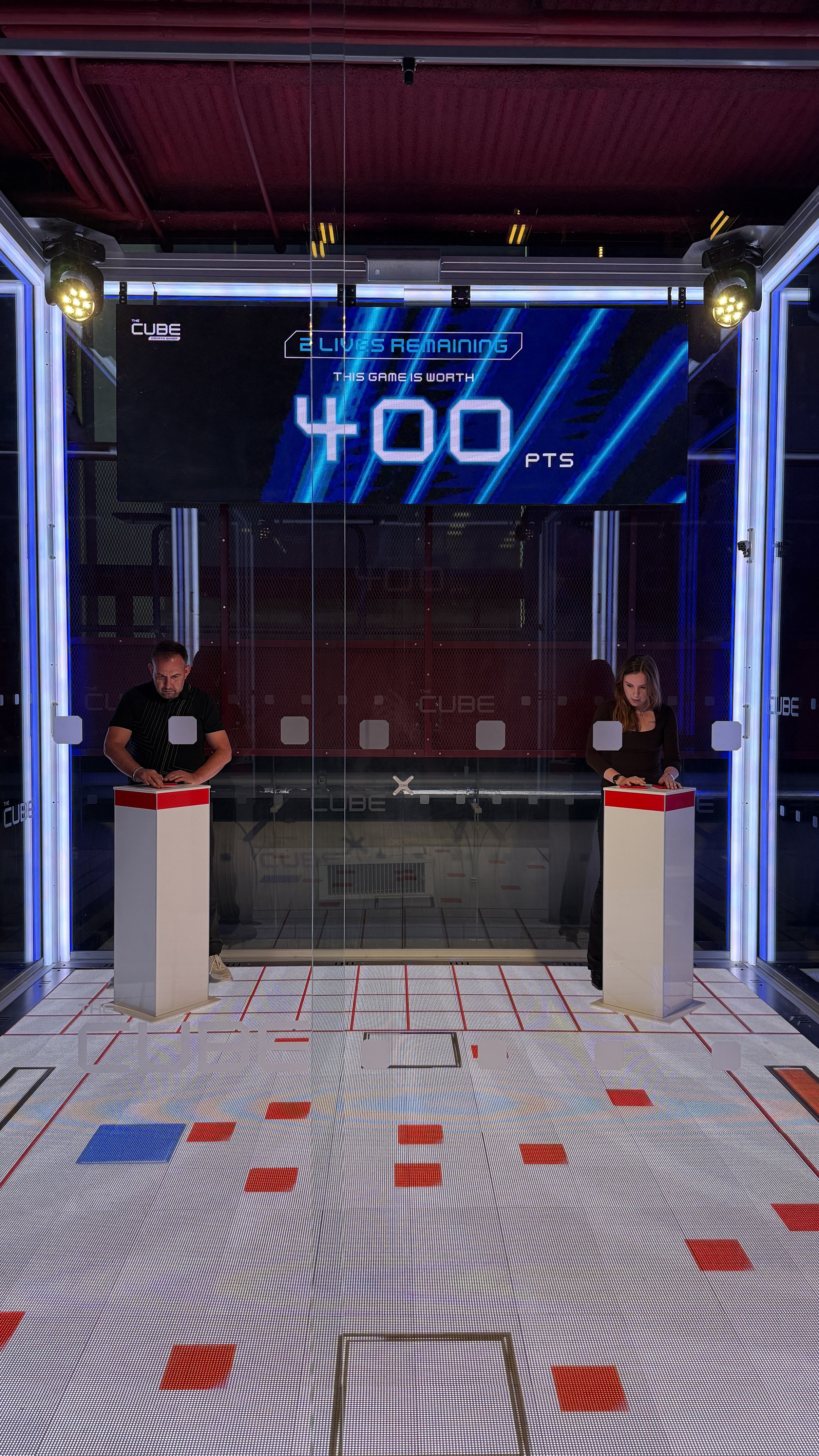 Designed with state-of-the-art technology, 21 incredible glass cubes are spread out across two floors, each holding a different challenge. We only took on seven cubes, each getting harder and harder throughout the game!